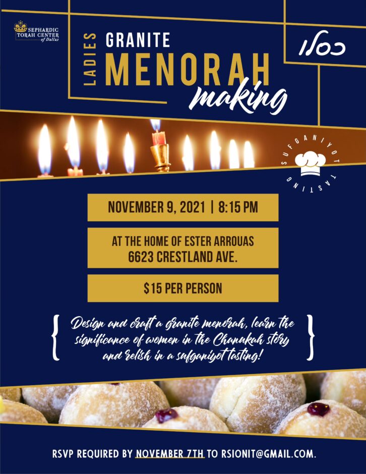 Rosh Hodesh Kislev Women’s Menora Making Event! + Add to Google Calendar + iCal / Outlook export Date Nov 09 2021 Expired! Time 8:15 pm Share this event