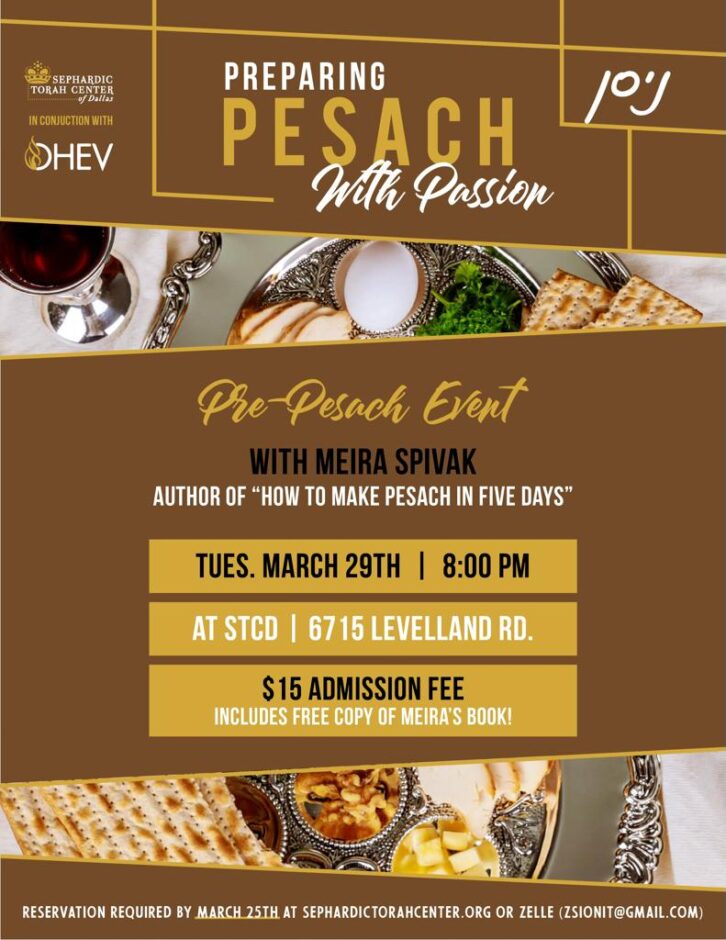 Women’s Passover Prep Class with Meira Spivak + Add to Google Calendar + iCal / Outlook export Date Mar 29 2022 Expired! Time 8:00 pm - 6:00 pm Share this event